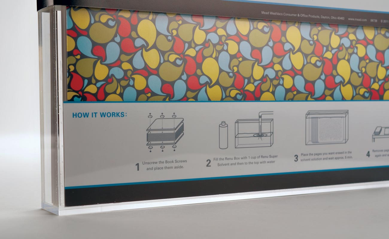 Create a new line of notebooks and packaging that are sustainable, safe for the environment and easy to maintain. Since Mead® has multiple brands, this new notebook should have it's own unique style that stands out.